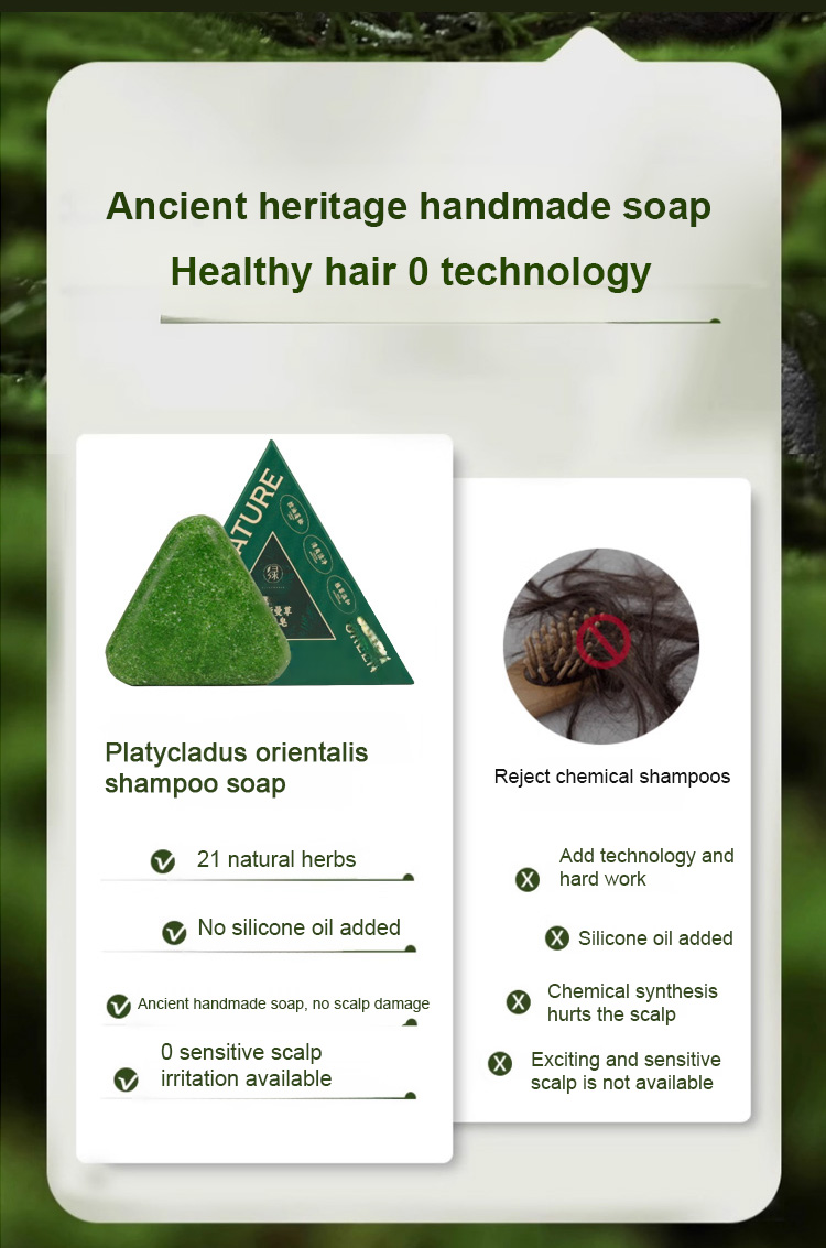 Natural plant soap shampoo, prevents hair loss, relieves itching, controls oil, and promotes thick, strong hair growth.
